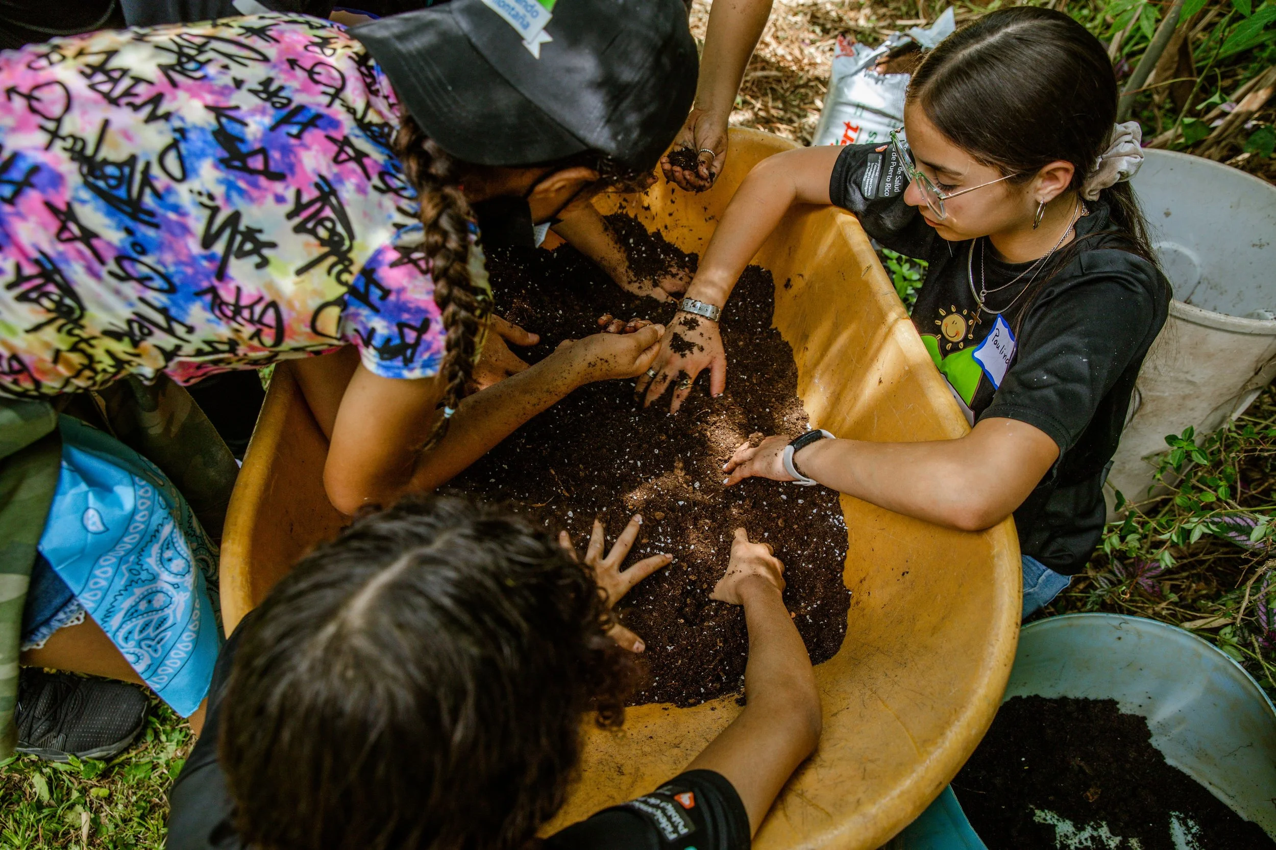 Our community-based service programs support long-term partnerships with local schools, elders, and farms in Las Marías. Volunteers contribute to initiatives like community gardens, rainwater installations, partner farm support, and activities with elders and youth.
